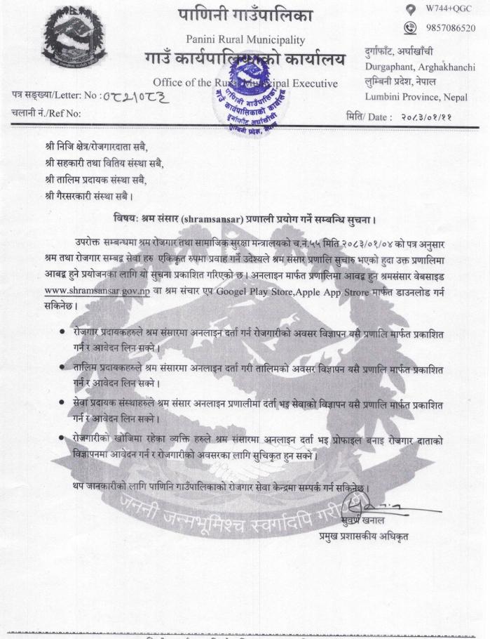 श्रम संसार प्रणाली प्रयोग गर्ने सम्बन्धी सूचना ।